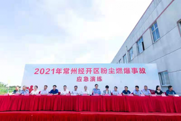 7月21日下午,经开区粉尘燃爆事故应急演练在常州市赛欧地板有限公司举行。本次演练由常州经开区管委会主办,是多部门协同、相关企业和社会救援力量共同参与的一次综合性应急演练。经开区党工委委员、管委会副主任张云逸到场观摩并担任此次演练总指挥。横林镇党委副书记、镇长姚鸿波,党委副书记张毋左,政法委员唐俊参加此次活动。
