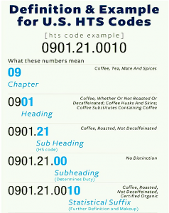 HS编码有6位数字,而HTS有8-10位数字。HTS编码的前四位与HS编码相同,但之后进行了更详细的分类,通常包括8位或更多位数字。这种更详细的分类使得美国海关能够更精确地识别和管理进口商品。
