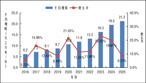 2016-2025年度中国刨花板生产能力