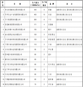 生产能力50万立方米/年以上刨花板类产品生产企业及企业集团