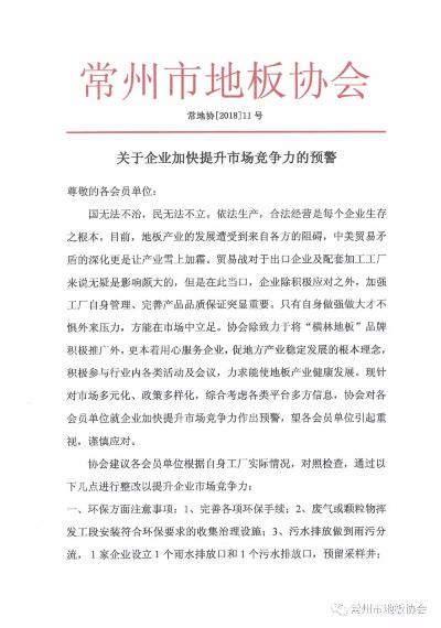 常州市地板协会关于企业加快提升市场竞争力的预警